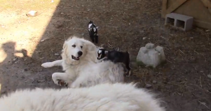 This is a story of a Pyrenean mountain dog, Betty and her baby goat companions. Betty and her companions stay together throughout the day.