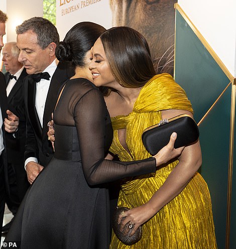 After posing for cameras, Beyoncé shared a hug with The Duchess of Sussex.