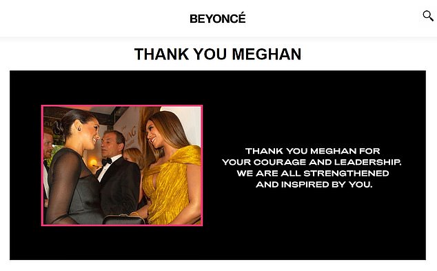 Beyoncé shared a public message of support for the Duchess of Sussex after the tell-all interview with Oprah.