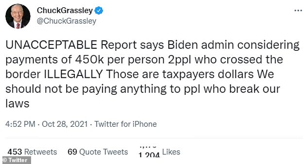 Officials from the Biden administration are looking into prospects that could potentially involve awarding up to $450,000 per migrant who have been separated from their families at the southern border.