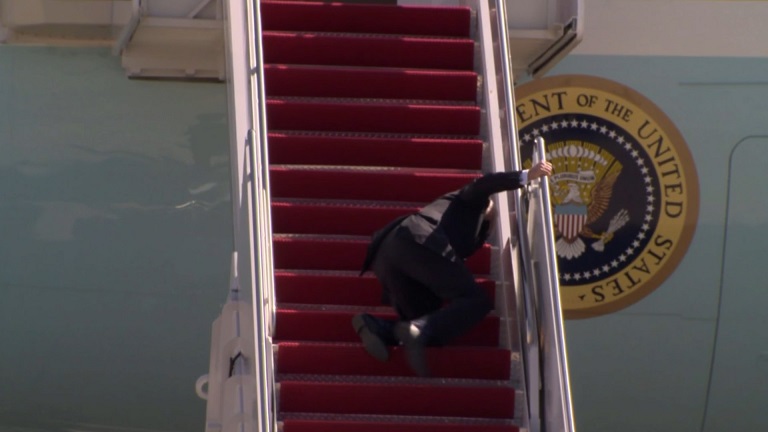 Later on, however, White House press secretary Jen Psaki appeared to change the narrative saying “tricky” Air Force One steps were to blame for the fall.