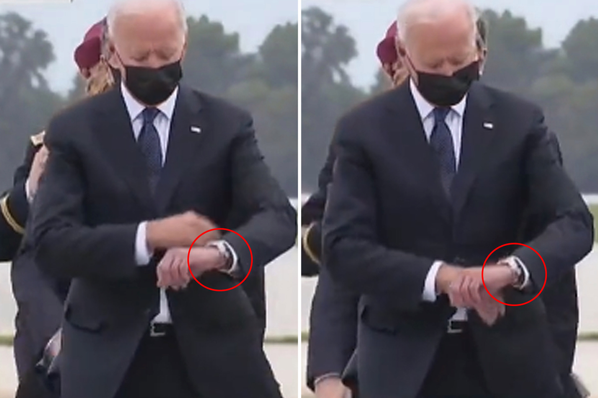 President Joe Biden was reportedly caught on film as he daringly checked his watch while paying tribute to the fallen Kabul heroes.