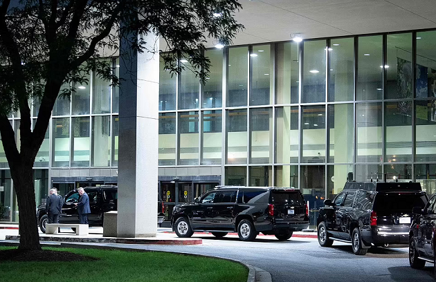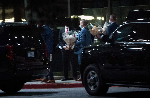 The first couple took a motorcade to Walter Reed, and staff were photographed unloading gift baskets and flowers.