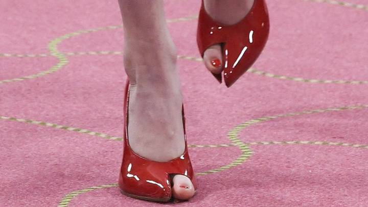 According to New York Post: ”The hoof-meets-woman hybrid footprint was first introduced into the fashion lexicon during Margiela’s debut spring/summer 1989 season when models donning the shoes dipped in red paint left the alien footprints in their wake.”