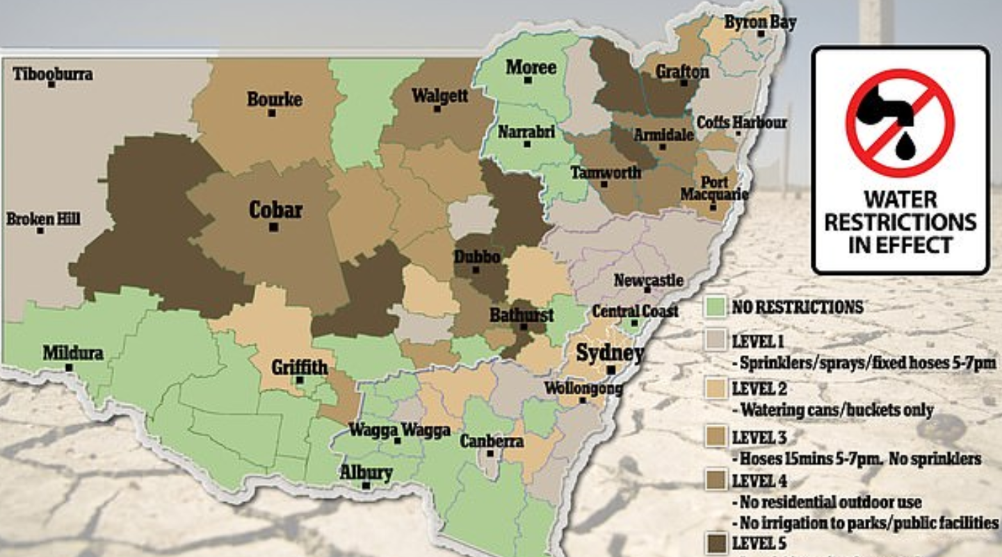 The residents of Murrurundi have reached the level 6 water restrictions where they are only allowed to wash the loads once a week, shower for three minutes and total bans on watering or washing their cars.