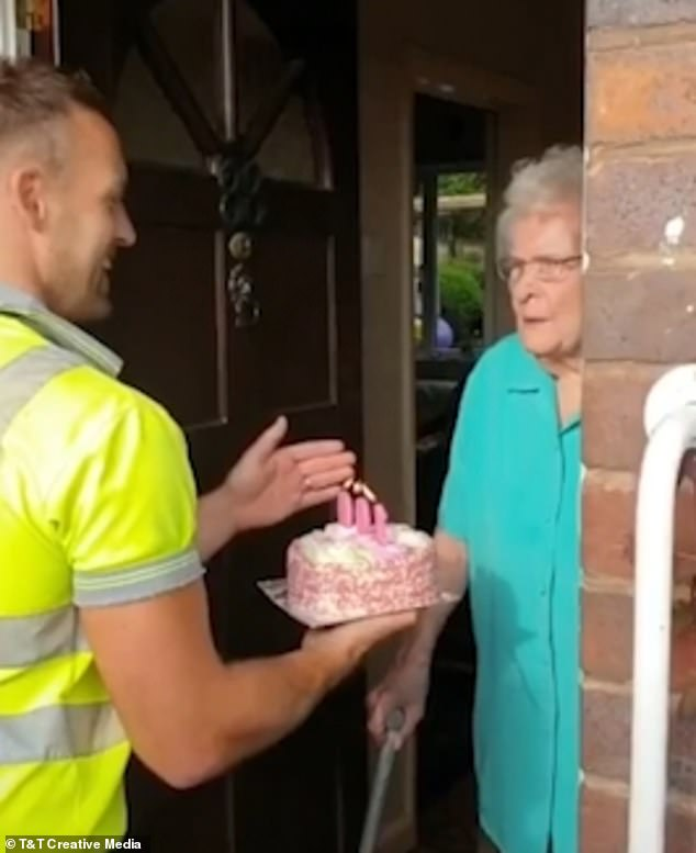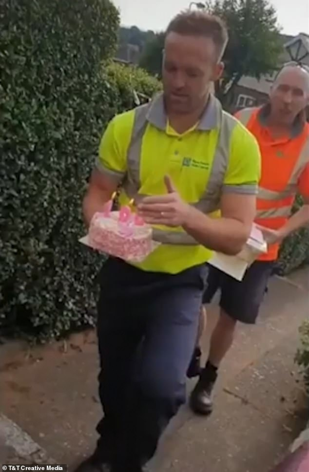 The video shows the pensioner crying tears of joy in response to the incredibly kind act from the binmen. The group asked the lady to make a wish and blow out the candles.
