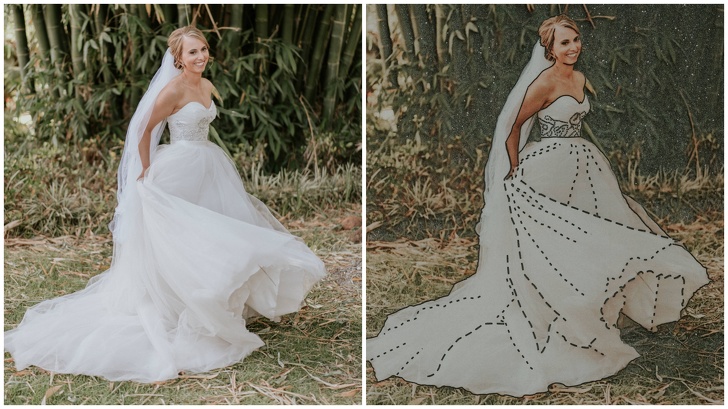 The bride got an opportunity to “see” the wedding photos running her hands over specially made shots. “Basically, the image is heated and then it rises,” explained James.