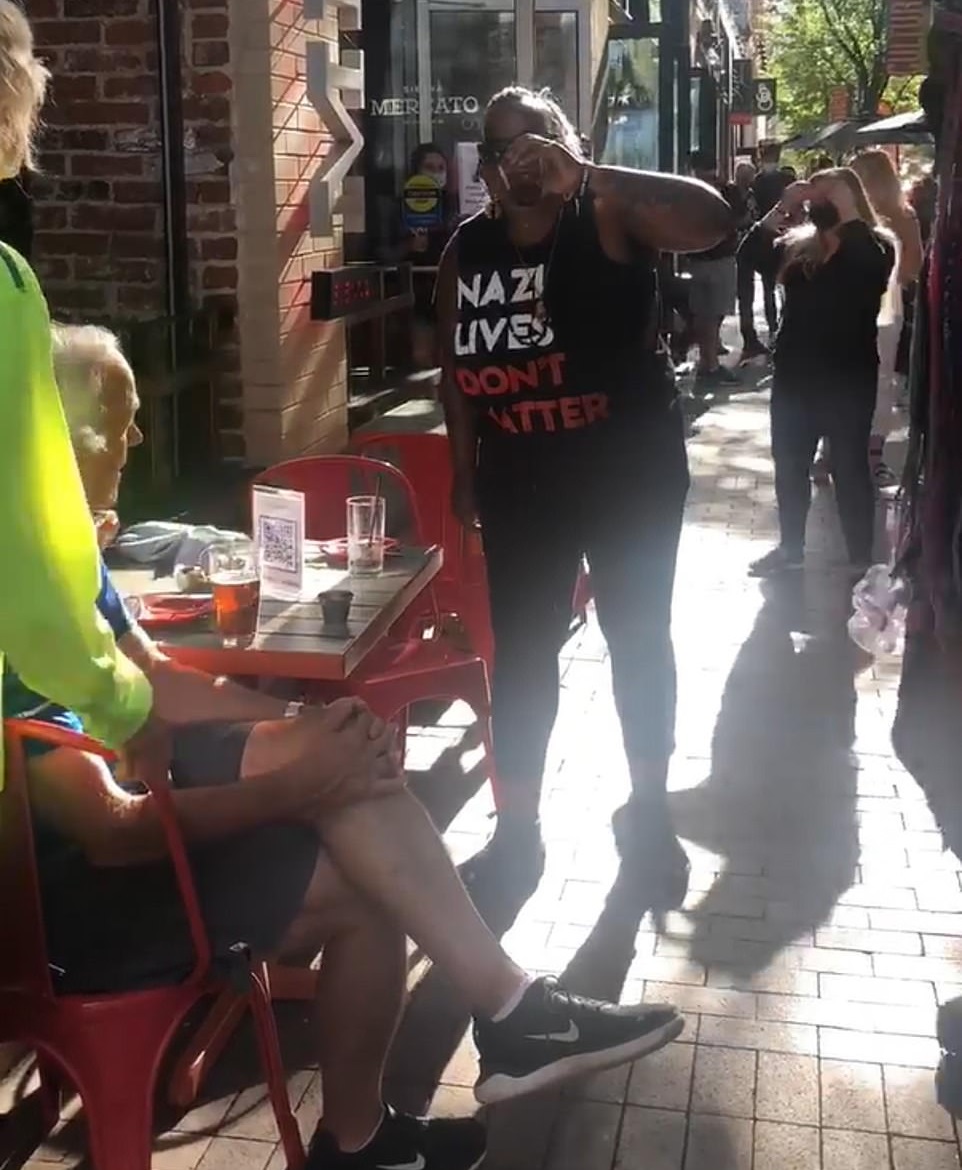 In the footage that has been circulating the internet, one of the protesters is also seen walking up to the elderly couple’s table and downing their drink in front of them.