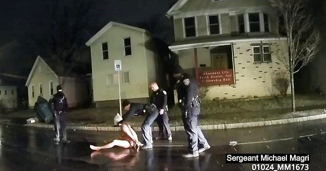 According to the video of Prude’s arrest, officers covered Prude’s head with a spit hood designed to protect cops from bodily fluids. The officers then pressed his face into the ground for two minutes until he lost consciousness.