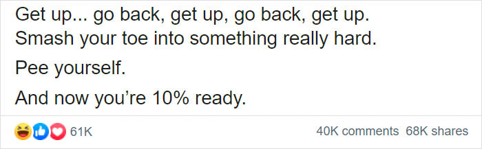 Laura’s latest viral post is about ‘preparation’ for having kids. Well, Laura has made a list of things you can try, so you get the basic idea of what parenthood is like.