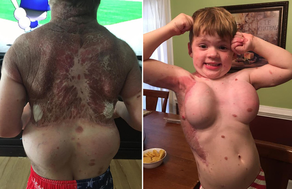The doctors proceeded with the more complicated operations as Dylan grew older. To produce enough skin for transplants, doctors had to insert implants that he had to carry for three months.