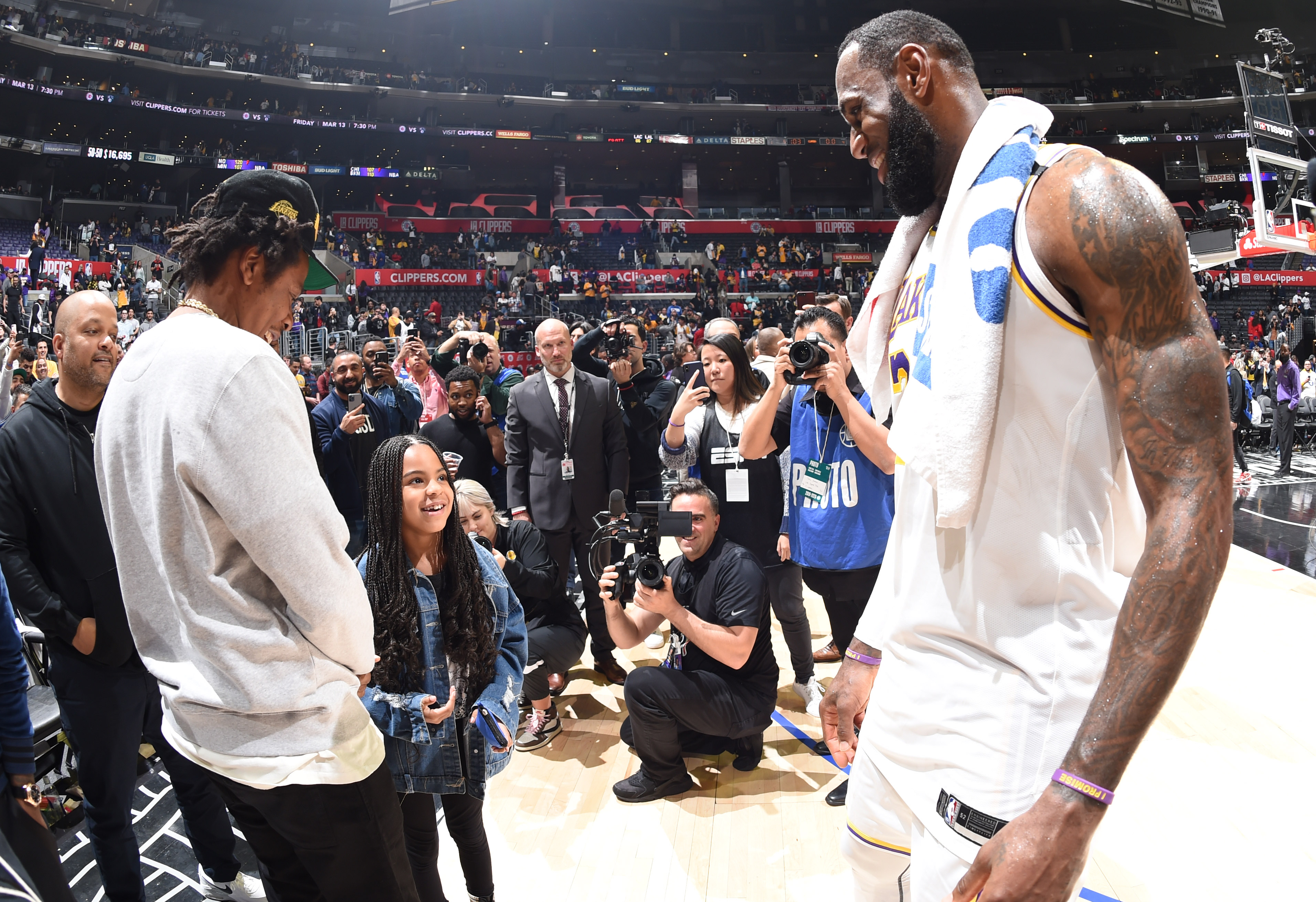 JAY-Z, along with her dad watched the Los Angeles Lakers defeat the Los Angeles Clippers at the Staples Center on Sunday night.