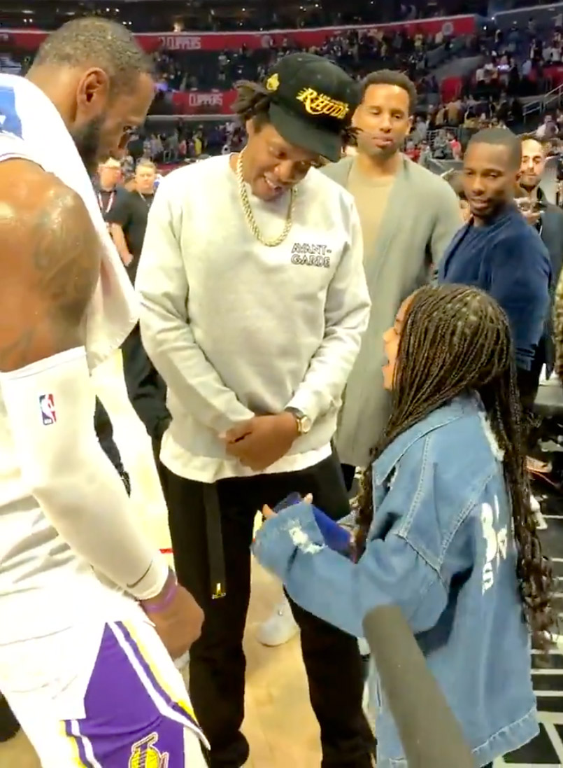 The footage shared by ESPN, shows Blue joining her dad to congratulate James after his team’s victory. The athlete also shakes hands with JAY-Z, 50.