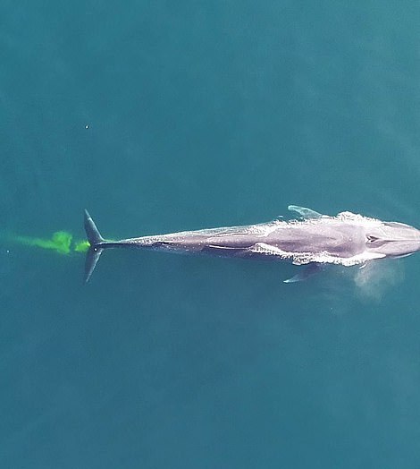 Recently, a big blue whale turns the water bright yellow in colour after opening up its bowels off at the coast of Australia.