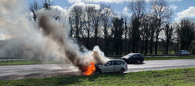 A shocked mother has described the horrifying moment, her BMW exploded into flames on a dual carriageway with her baby and toddler sat in the back.