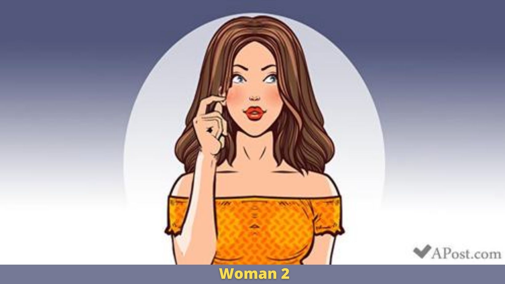 If your think that woman number 2 is a liar, then yes! You are right! You have every right to be suspicious of this woman. Observe how she is touching her ear and avoiding eye contact. Woman number 2 is ready to lie to you, or at least ready to tweak the truth!