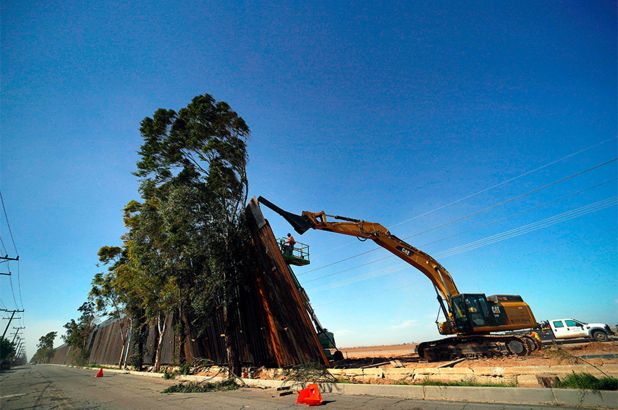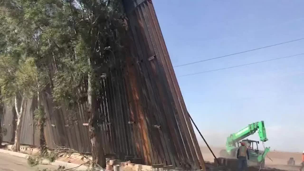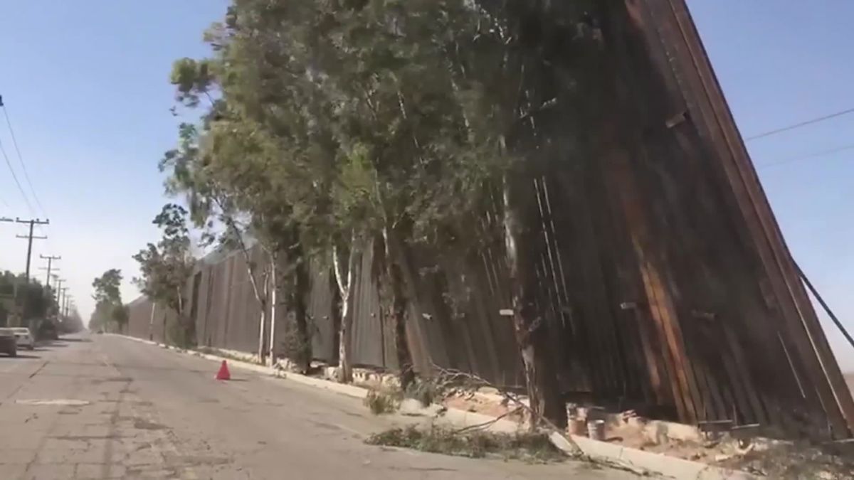 The newly installed panels from the US border wall fell over and landed on the tress on the Mexican side.
