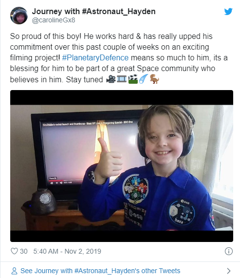 Hayden eventually impressed the European Space Agency and they invited him into the fold. They took him as a Planetary Defense Ambassador!