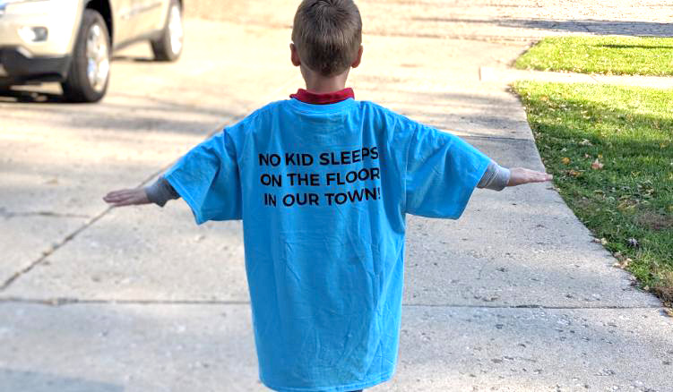 5-year-old Tyler Sliz from Illinois wants to make sure that no child in his community has to sleep on the floor.
