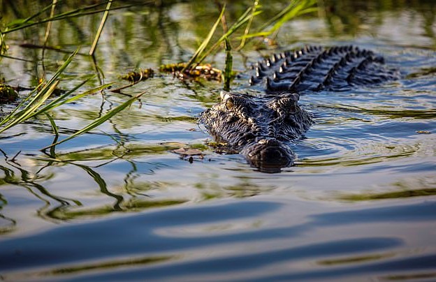 The saltwater crocodiles, also known as estuarine crocodiles, are territorial reptiles that can grow up to 20 feet long and weigh one ton.