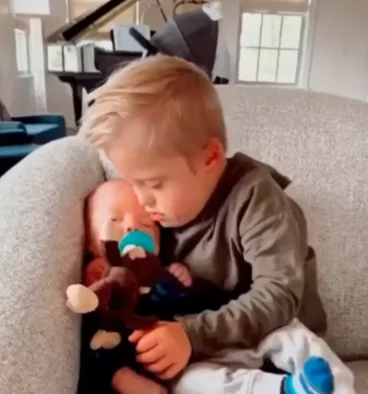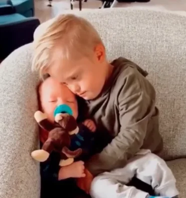 The baby was just crying and it seemed impossible to put him to sleep. It was when her son Welles, who suffers from Down syndrome, volunteered to soothe the baby.
