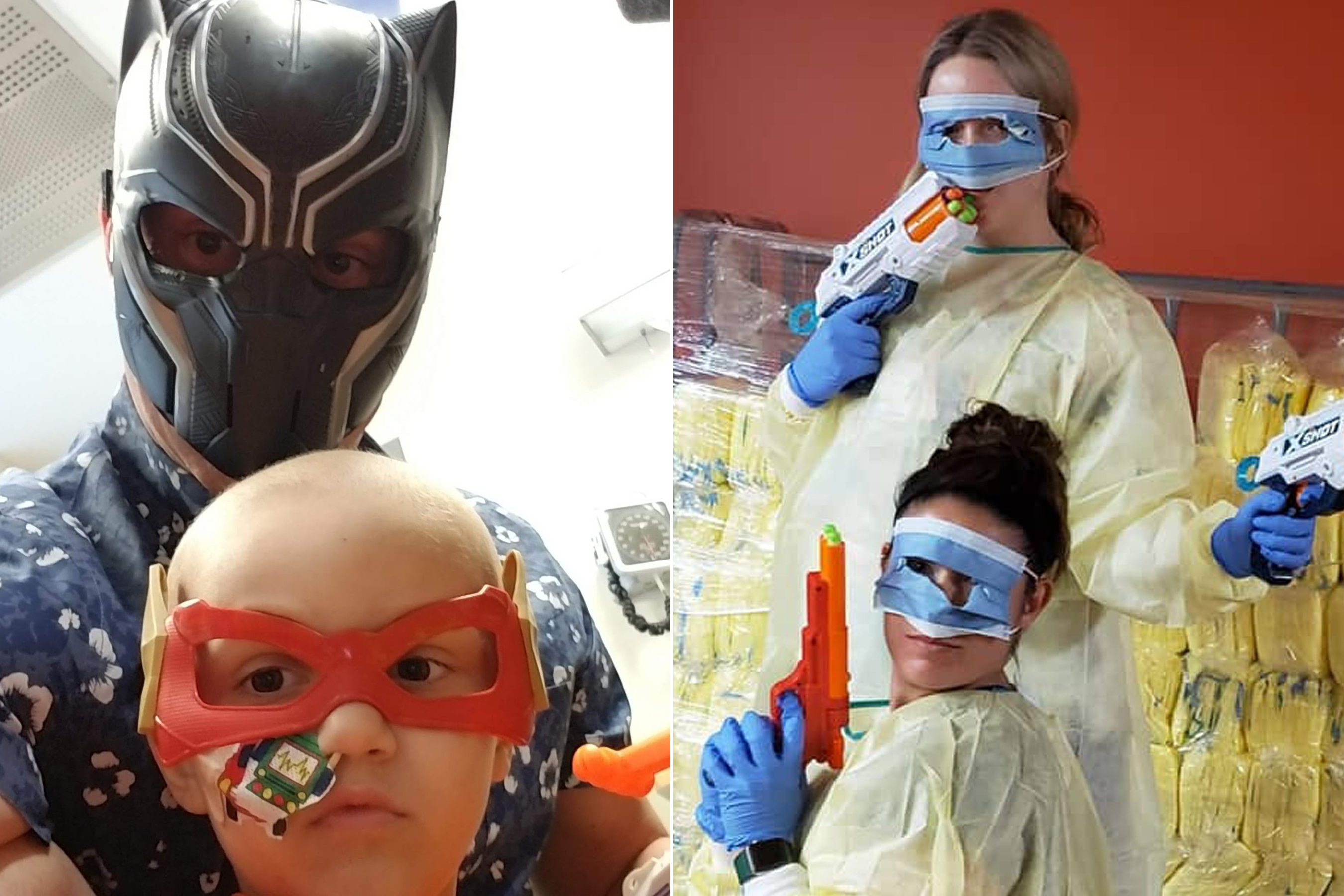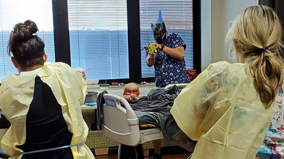 Hospital staff made a playful atmosphere for a young boy, who is battling with cancer.