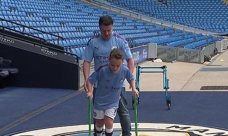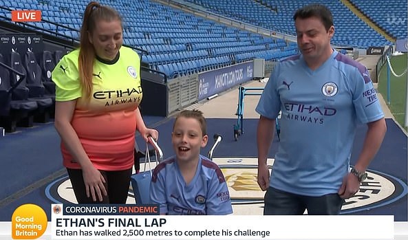 Finishing his 100th walk in style, Ethan took to the Manchester City football pitch as he appeared on Good Morning Britain for an interview.