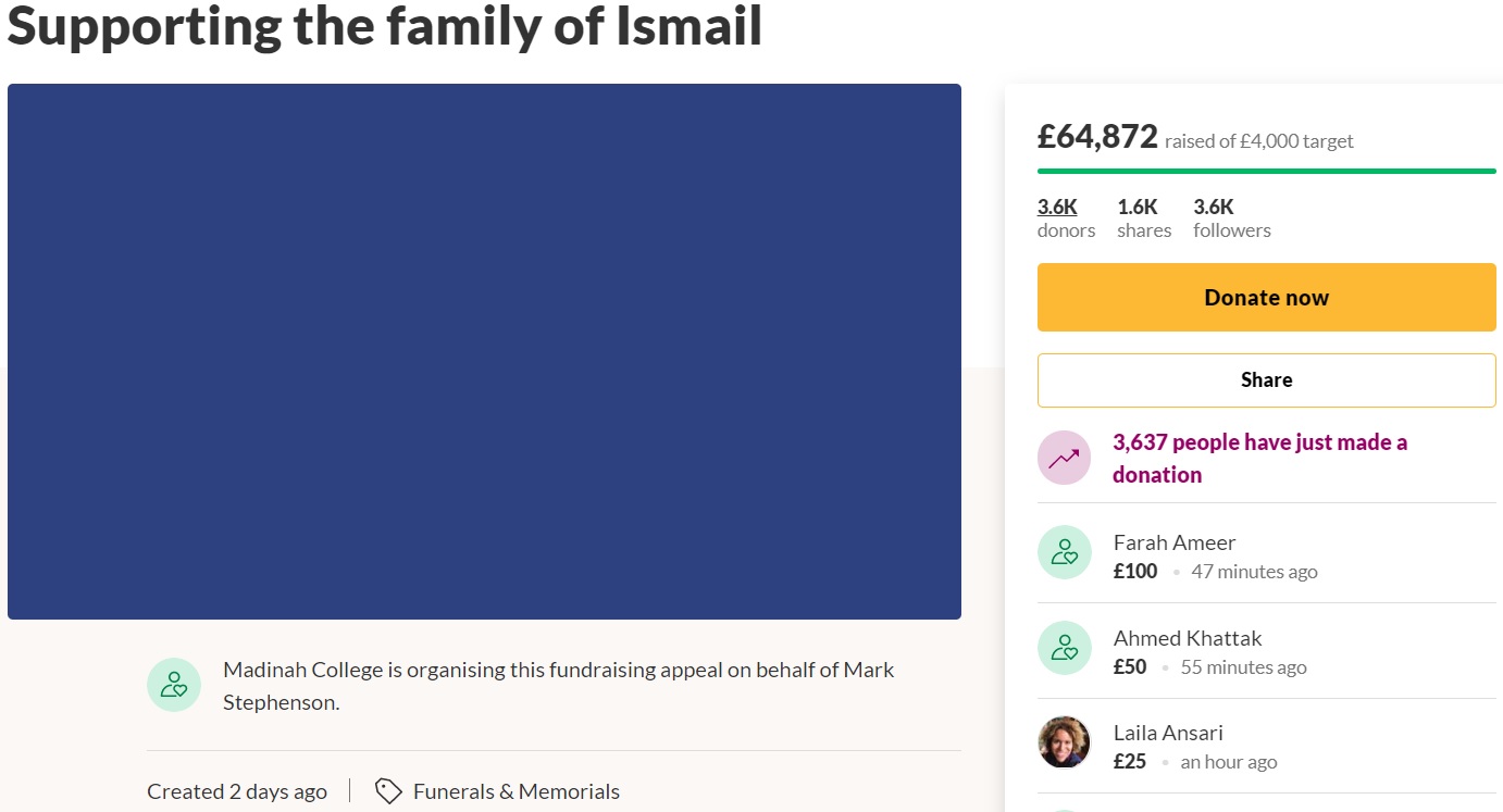 “We at Madinah College would like to appeal to our brothers and sisters to donate generously to help raise £4000 for the funeral costs and to support the family, who sadly also lost their father to cancer.”