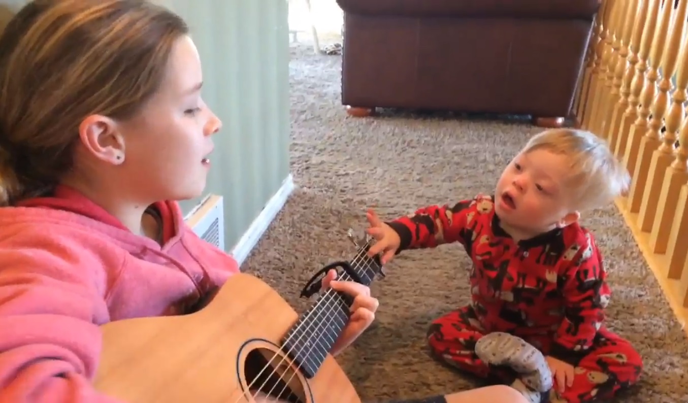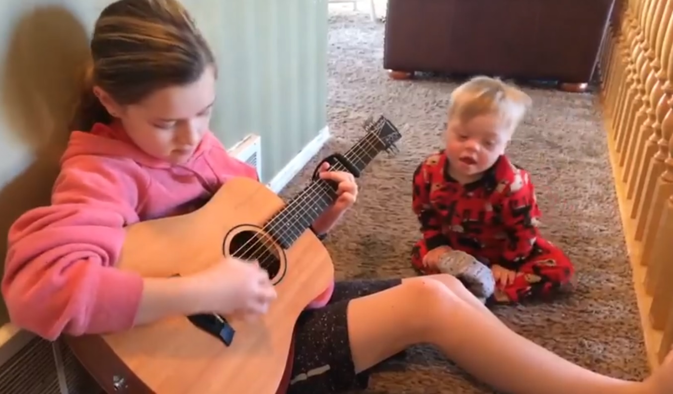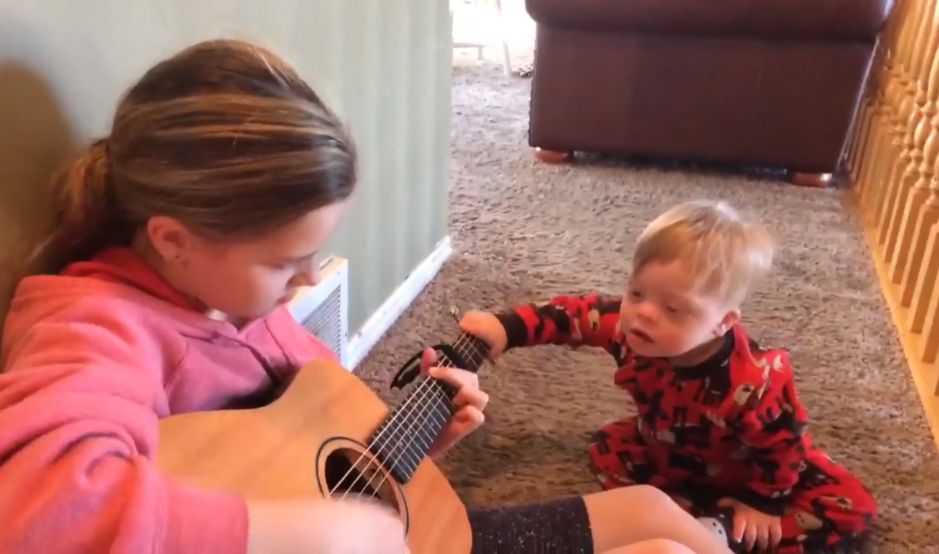 As Amanda explained, Bo’s sister, Lydia, loves nothing more than playing the guitar and singing with her brother. While his speech may be limited, the little guy has no problems expressing himself through music.