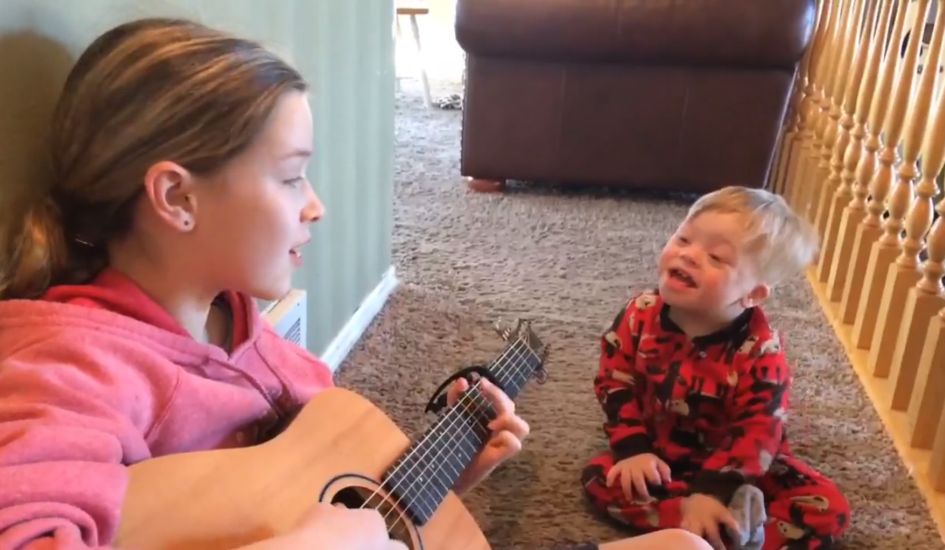 A young boy with Down syndrome was caught on camera singing like a pro while his sister was playing ‘You Are My Sunshine’ on her guitar.
