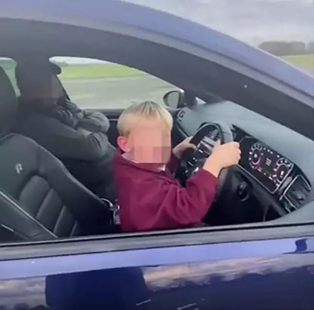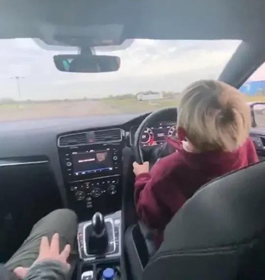 The person in the passenger seat can be heard telling the child to ‘open her up’ and ‘give her some.’ After some time, he says: “Whip her round, give it a little bit of power, go on, get up there.”