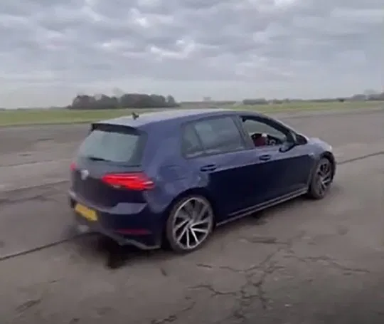 A child has recently been caught on the camera speeding a Volkswagen Golf on an abandoned road with no seat belt.
