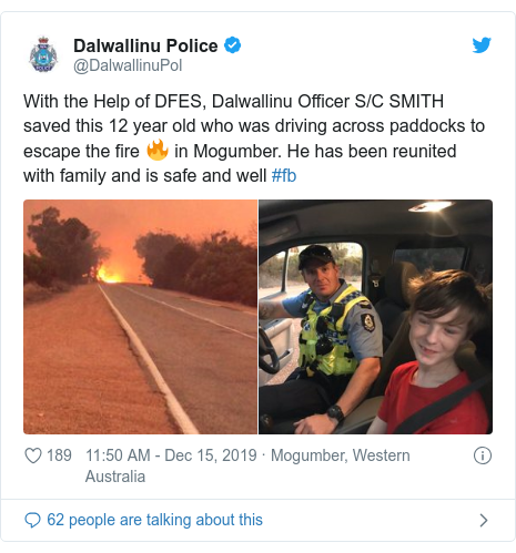 “Typical farm boy, he was pretty clever, I think the problem was he just didn’t quite know where to go and it was hard to see with all the smoke,” Craig Spencer, from the Bindoon Bushfire Brigade, told ABC Radio Perth.