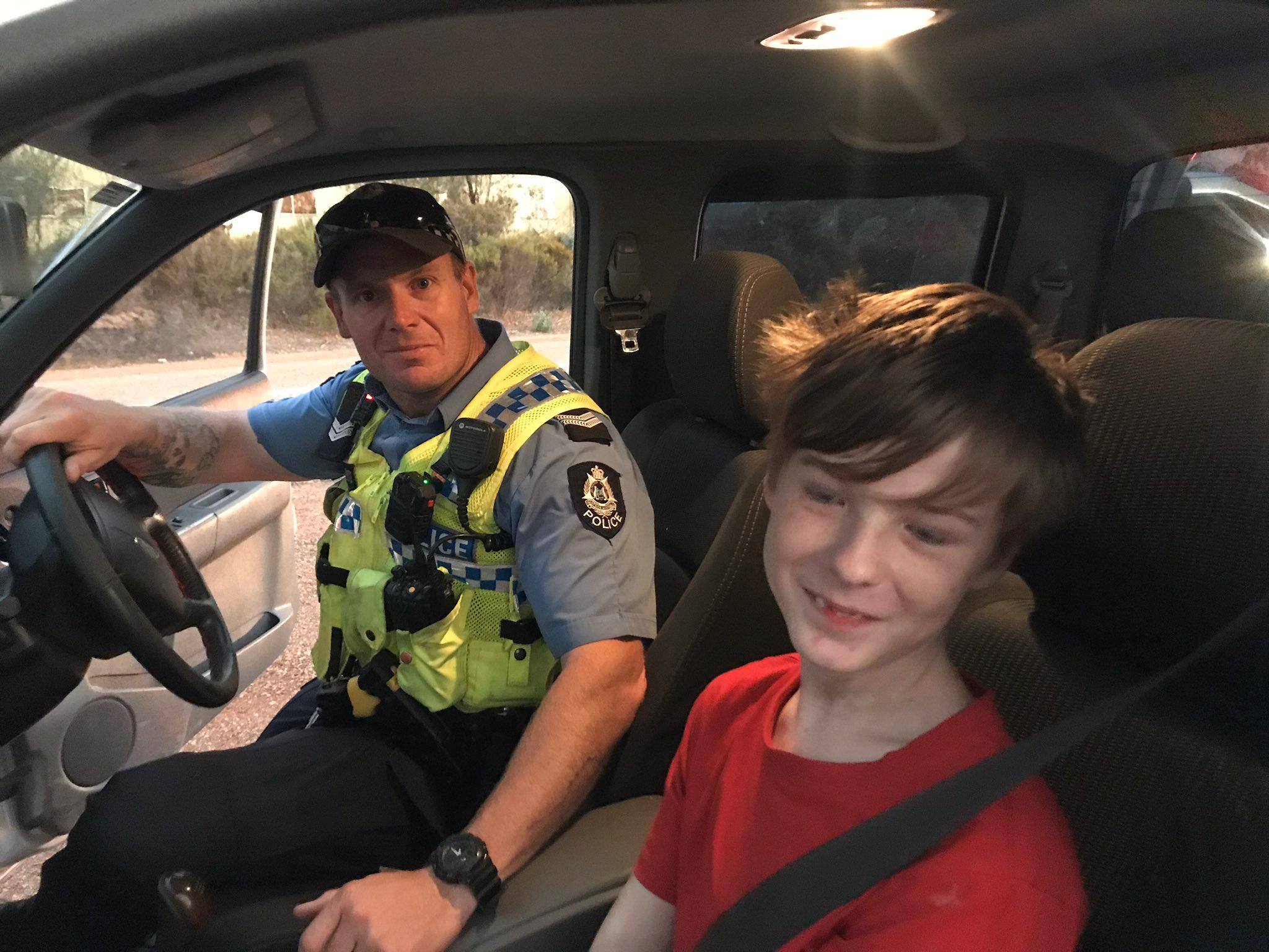 Luke was reunited with his family by Dalwalinu Police officer Michael Daley.