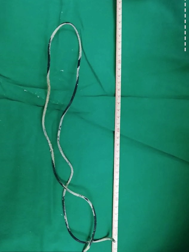 Medics immediately scheduled Xiao He to undergo the surgery and they pulled out the 2ft. long electrical wire from his urethra.