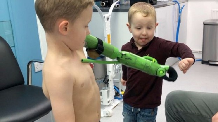 But Ben Ryan, from Menai Bridge on Anglesey, designed a special prosthetic for 5-year-old Jacob. Ryan has working experience in this area because his son Sol underwent an emergency amputation at 10 days old so Ryan developed a hydraulic prosthetic afterward.