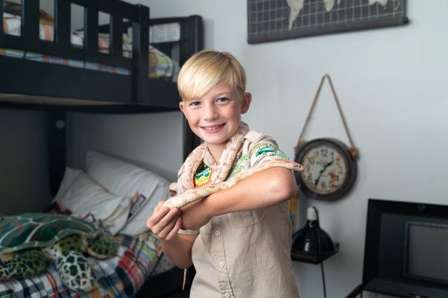 Watch the 10-year-old boy who lives with more than 12 reptiles