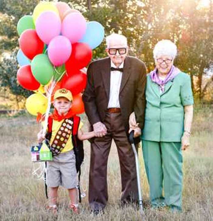 Elijah dressed as Russell while his great grandparents dressed as Carl and Ellie.