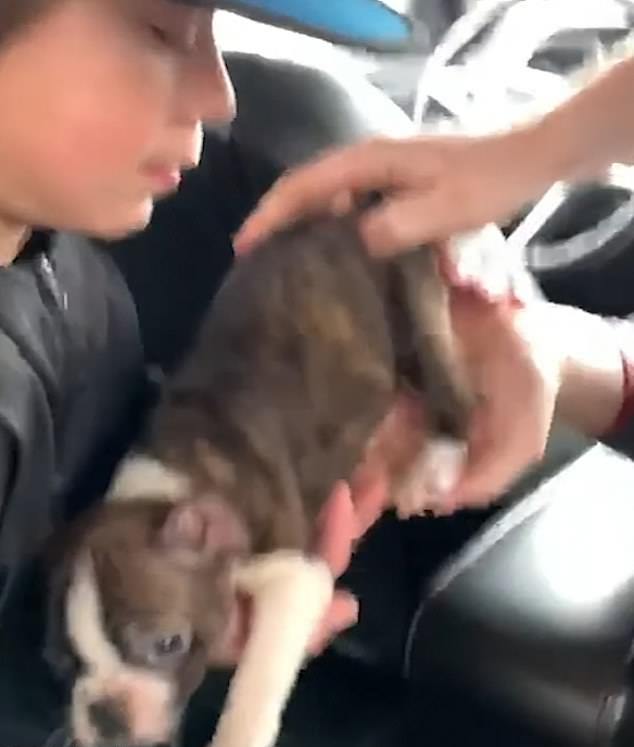 The 13-year-old sobbed and stroked the pooch and the clip ended.