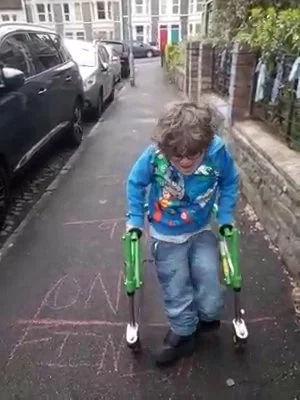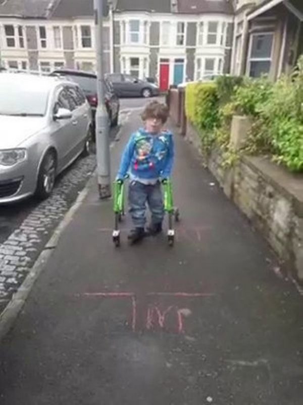 The young boy, who has spina bifida, walked ten meters a day with his frame to raise funds.