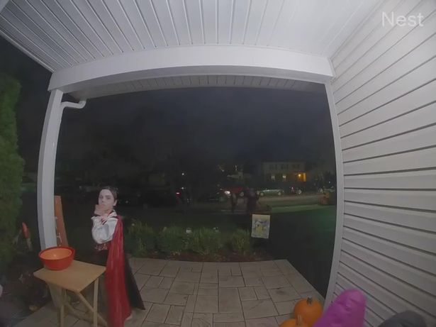 The footage showed a boy donning his Halloween look walked up to the porch and look into the bowl to see it has already been emptied.
