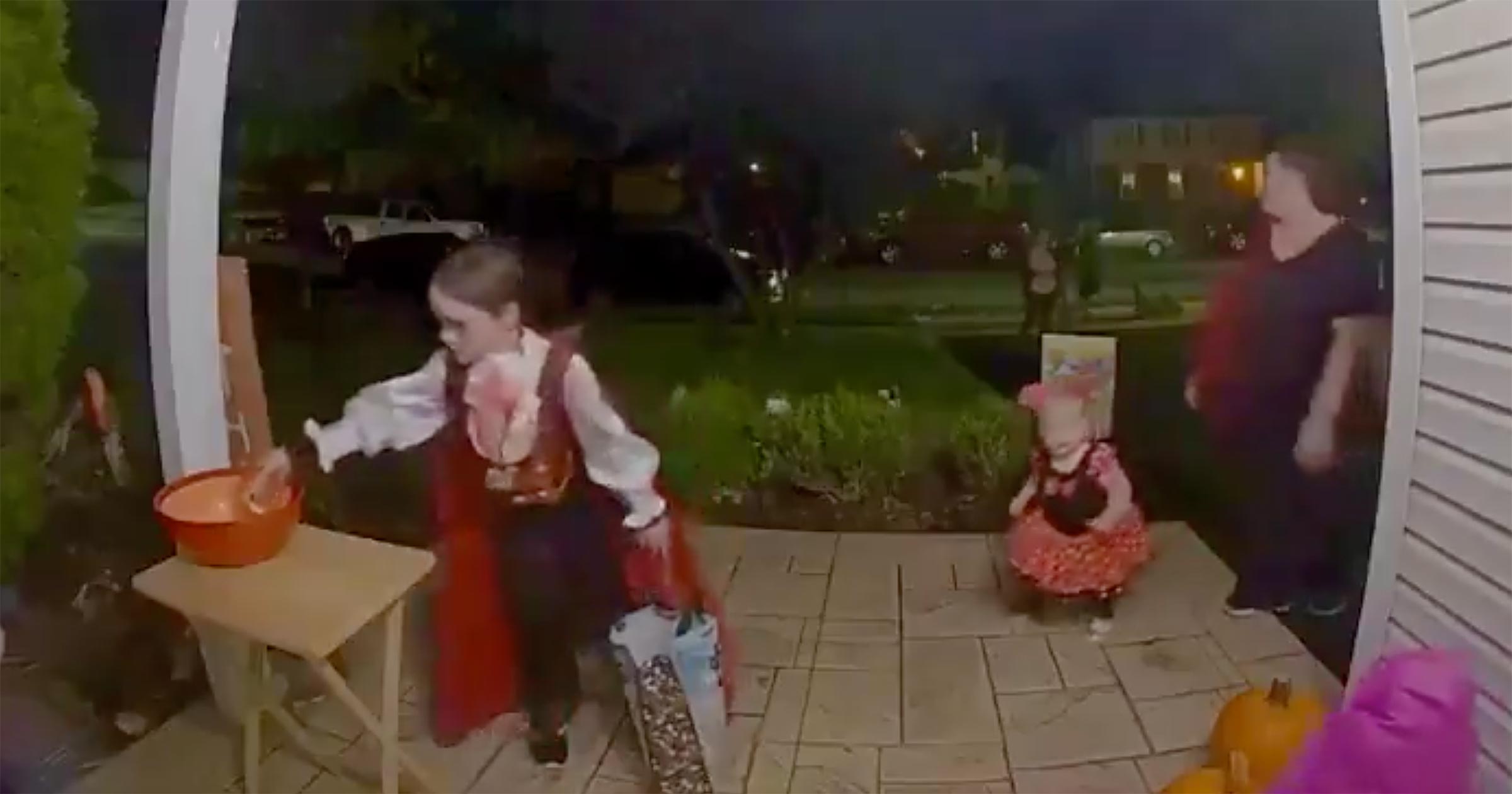 She decided to leave a big bowl of candy on her porch so other kids in her area wouldn’t miss out. They left the home and the security camera captured something really amazing.