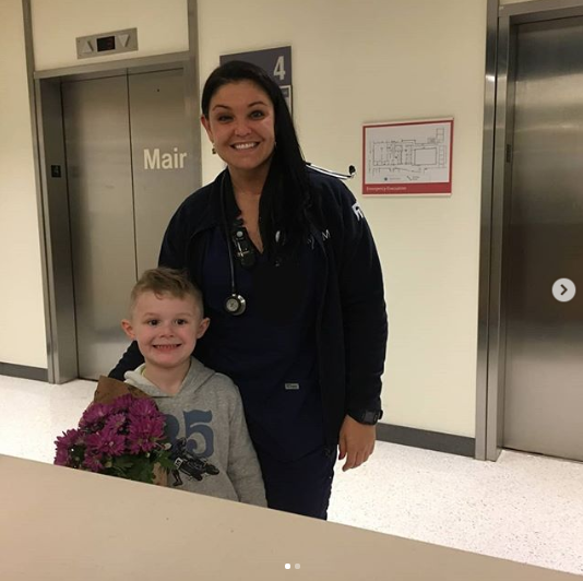 Thompson told WNEP-TV: “You want someone to treat your child the way you would treat them.” She and Slade went back to the hospital with a gift and special hug for the wonderful nurse.