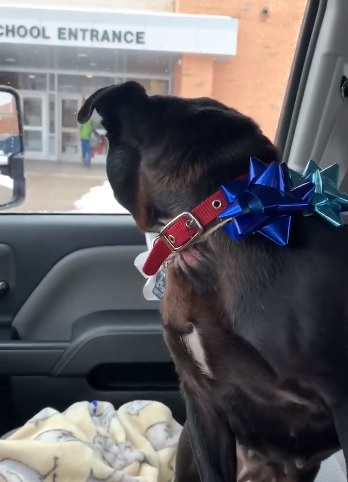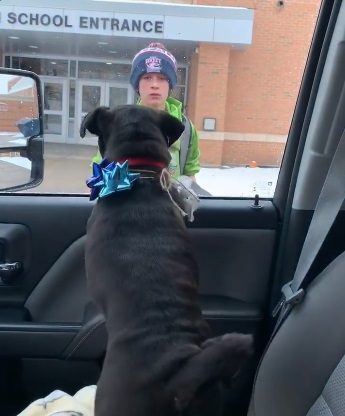 Since her son was out of town at the time of the reunion, the mum decided to surprise him by taking Piper with her as she picked him up from the school.
