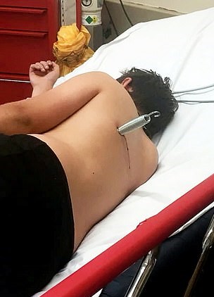 Immediately, the boy collapsed to the ground with the coil being stuck deep in his back mere centimeters away from his spine.