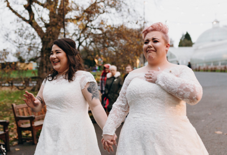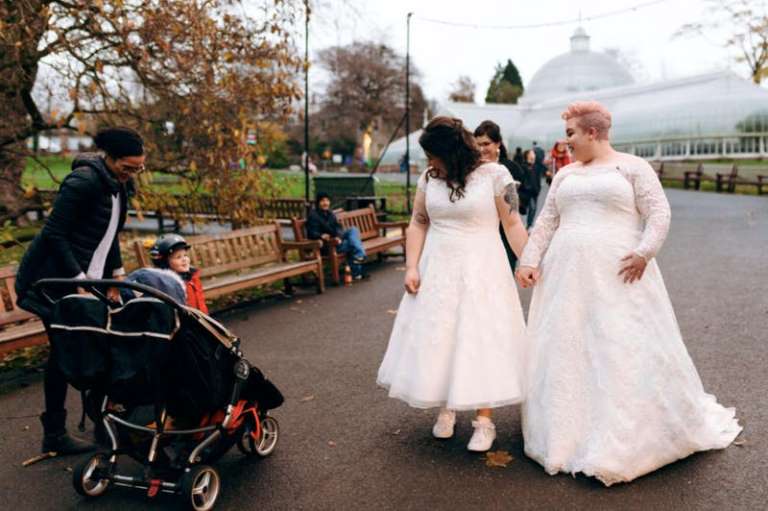 The two dazzling brides had their wedding pictures taken in the Glasgow Botanic Gardens by Kirsty McLachlan.
