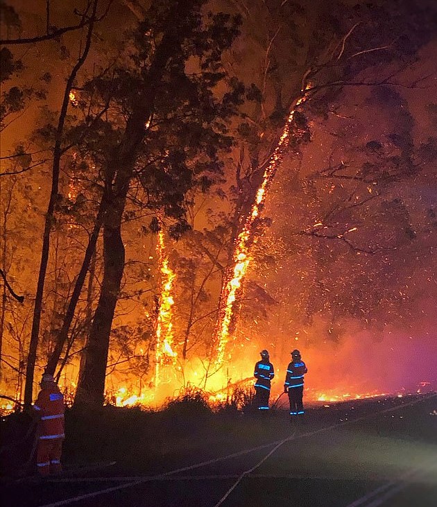 “Fire activity increased over the evening due to strong westerly winds. Firefighters are working in the area to protect properties where possible. Seek shelter as the fire impacts. It is too late to leave,” the Rural Fire Service announced.