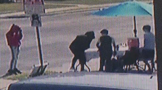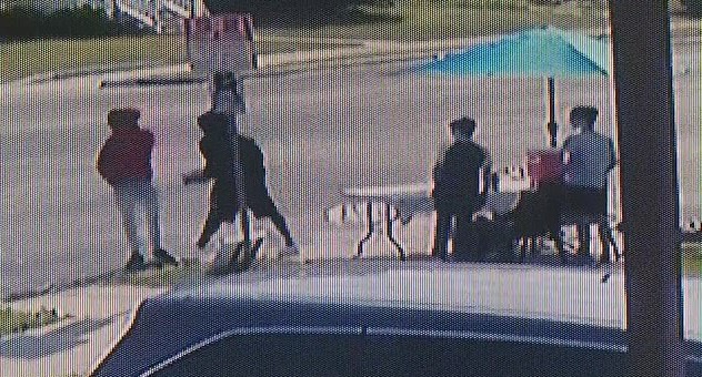 As seen in the surveillance footage, two older males wearing hoodies approached Jude and his friend after crossing the street.