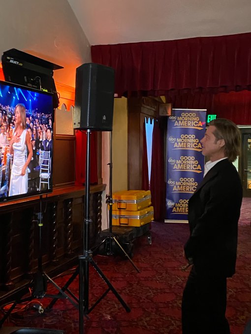 While Jennifer was giving her acceptance speech Brad made sure to watch the moment from backstage. In a photo captured by The Hollywood Reporter, the 56-year-old actor can be seen watching Jennifer on screen from backstage when her name was called as the winner for her performance in The Morning Show.