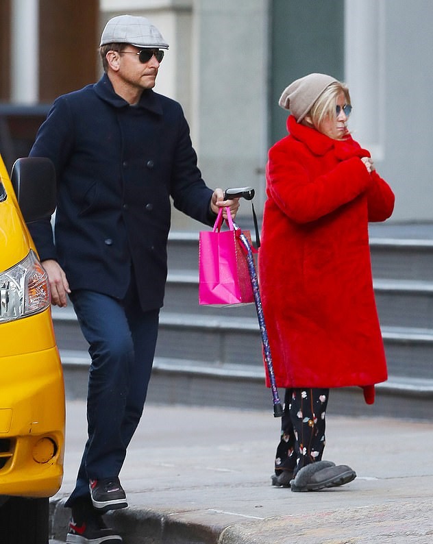 During their outing, Bradley was seen donning a dark blue coat complemented with a grey flat cap and chic sunglasses.